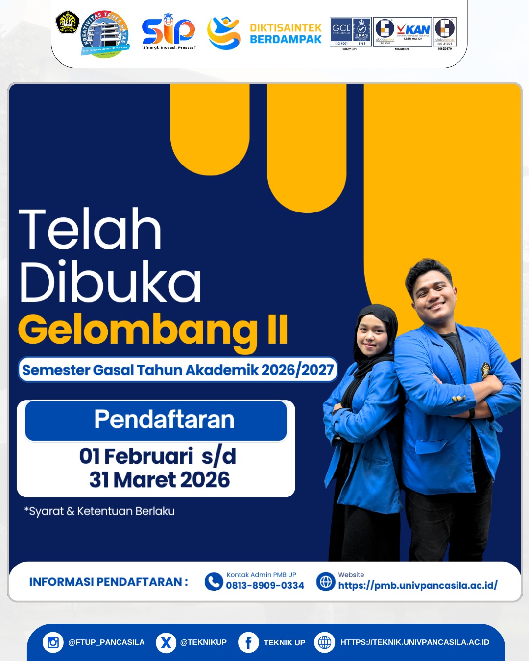 Gelombang II masih dibuka! 🎓✨ Saatnya ambil langkah berani untuk masa depanmu bersama Universitas Pancasila.