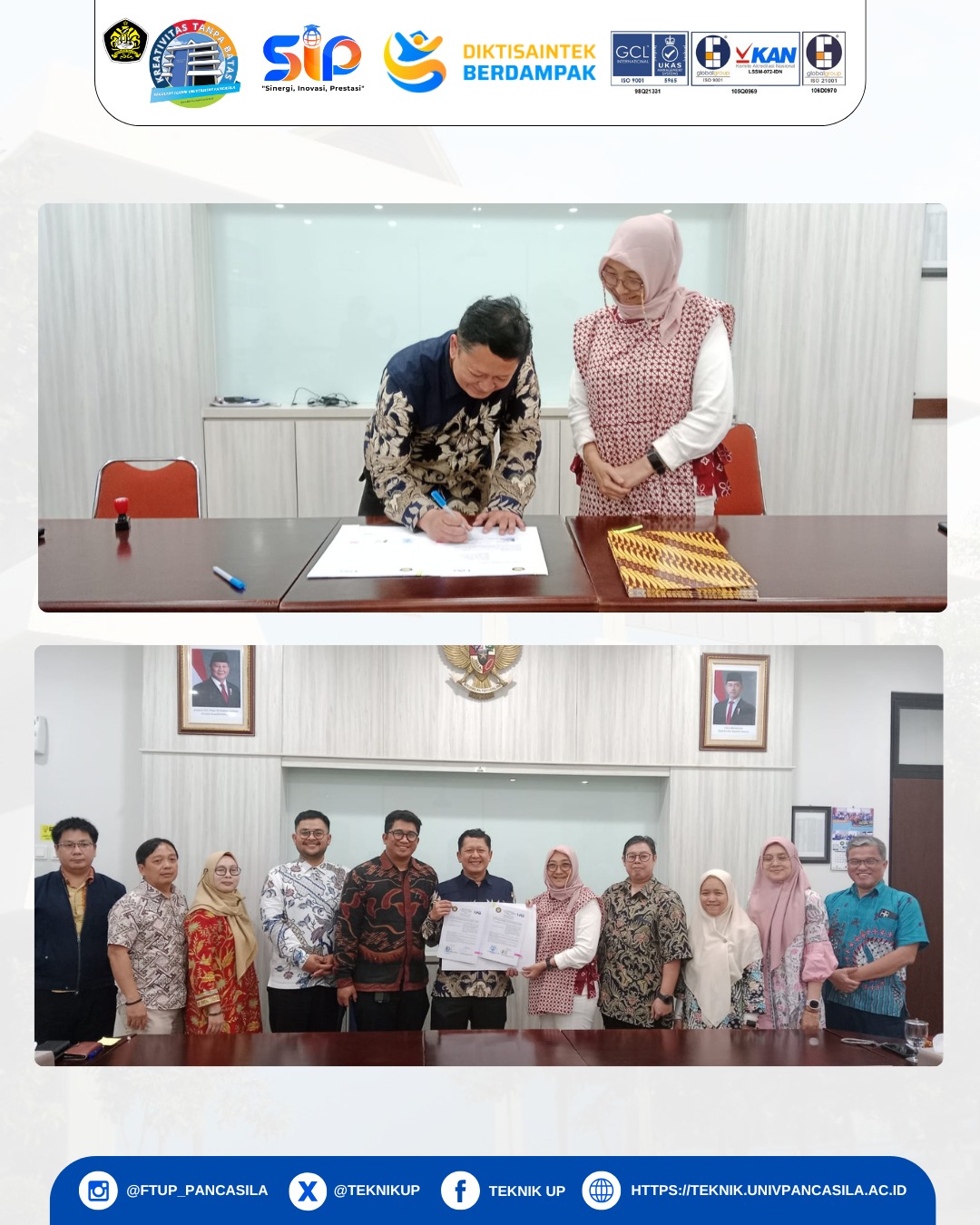 Pada 2 Oktober 2025, bertempat di Ruang Rapat Gedung Fakultas Teknik Universitas Pancasila (FTUP), telah dilaksanakan penandatanganan Perjanjian Kerja sama antara FTUP dan Universitas Ary Ginanjar.